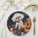 Plato De Papel Frisa de Bichon de Halloween con calabazas asustad