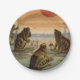 Plato De Papel Frogs Lily Pads Moon Illustration