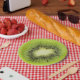 Plato De Papel Fruta kiwi fresca. Secador redondo aislado