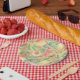 Plato De Papel Frutos, melocotones, peras, limones, acuarela