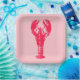 Placas de papel en un boceto digital de una langosta de fondo fucsia profunda rosa sobre fondo rosa de coral pastel