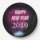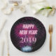 Usando un fondo negro, estas placas presentan una brillante pantalla morada con "Feliz Año Nuevo" escrito en letra lila grande. El año "2019" está escrito debajo. Personalizar este plato como quieras.