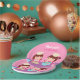 La placa de papel de estas fuentes del fiesta ofrece a dos cocineros lindos de la niña en delantales y gorras del cocinero. El chica con la pinza de pelo está amasando la pasta mientras que el chica con la cola de caballo está mezclando la pasta. ¡La paleta de color del rosa y de la púrpura es femenina y dulce para un chica del cumpleaños! ¡Sirva su comida del fiesta en estas placas! ¡Añada su mensaje del fiesta!