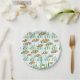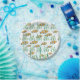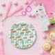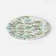 Una colorida escuela de naranjas de peces payasos blancos y negros nadan a través de algas verdes y burbujas azules en estos platos de papel únicos.