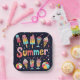 Bright and colorful popsicles, ice cream cones, and refreshing drinks are arranged around the word "Summer," creating a lively and festive atmosphere
