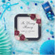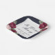 Elegante plato de papel funerario/conmemorativo de color azul y plata con un marco plateado adornado con rosas color agua rojo y rosa burdeos y flores de aliento para el bebé. Elementos coincidentes disponibles.
