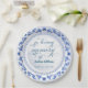 Un diseño elegante con un diseño floral azul, porcelana y caligrafía elegante que se puede personalizar con detalles.