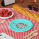 Divertidos platos para fiestas de cumpleaños con pez globo haciendo un deseo.