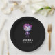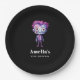 Platos de papel con un ilustracion lindo. Monstruo Frankenstein con pelo rosado y púrpura y traje y corbata de dapper.