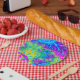 Estos coloridos platos de papel fractal tienen colores de neón brillantes y vibrantes, como el arcoiris azul cielo. Estas placas de papel se pueden usar para fiestas de cumpleaños, celebraciones y otros eventos especiales. Puede elegir el tamaño de las placas de papel antes de comprar. Compruebe si hay disponibles gorras fiestas y servilletas para este diseño específico que coincidan con las placas de papel.