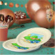 Placas de papel fiesta de vidrio solar con servilletas de papel a juego.