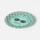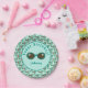 Este plato de papel está decorado con un patrón inspirado en el verano en la playa. Cuenta con gafas de sol de estilo retro y tablas de surf en colores fríos de verde azulado y verde con naranja. El texto es fácilmente personalizado para un fiesta de playa así como para un cumpleaños u otro evento.