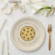 Este diseño presenta una galleta de cumpleaños, galleta minimalista de boda, regalo minimalista de boda, tipografía redonda caprichosa y divertida, postre de galleta con chispas de chocolate, buffet de cena de ensayo de boda, fiesta de compromiso de cena de ensayo, diseño clásico simple y elegante, plato de papel para fiesta de boda, suministros para fiesta de boda, snack de dulce casero horneado, obra de arte de laura lacina