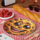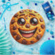 La imagen muestra una sonriente galleta de chocolate. Se puede ver como un ejemplo de la cocina creativa o como un ilustracion humorístico y alegre.
