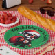 Eleva tus reuniones de vacaciones con nuestro "Gangster - Sleigh Rides? Más bien tomar placas de papel de Cadillac. Este diseño presenta una imagen humorística y elegante de un Santa gángster, vestido de rojo, negro y blanco con gafas de sol negras y, por supuesto, su medallón, sobre un fondo verde, llevando una bolsa de juguetes. ¡Perfecto para añadir un toque festivo y arriesgado a las celebraciones de tus Navidades! Monogramado para cambiar la imagen y el texto.