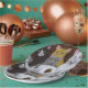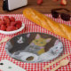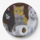 ¡Una pintura acrílica de cuatro gatitos juguetones metidos en problemas adorna estos divertidos platos fiestas!