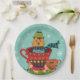 Plato De Papel Gato caprichoso sentado en una taza de té Navidade