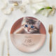 La parte superior presenta una linda foto realista de un gato bebé con ojos azules. Creado con IA. La parte inferior presenta un campo de texto oro subió con un texto de cumpleaños personalizado. Elegantes platos de papel de cumpleaños.