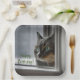 Estos platos de papel de cumpleaños tienen un lindo gatito mirando hacia fuera en la escena del invierno.