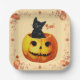 Plato De Papel Gato de Halloween en la almohada de calabaza