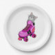 Plato De Papel Gato de patinaje sobre rodillos rosados