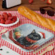 Plato De Papel Gato negro con manchas deja que nieve Navidades