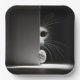 Un curioso gato blanco está mirando desde detrás de una pared con sus bigotes y pezuña sobre un fondo oscuro