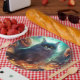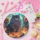 Plato De Papel Gato siberiano de Halloween con calabazas aterrado