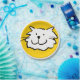 Ese gato está sonriendo. Personalizado de gato sonriente en un plato.