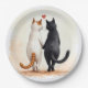 Dos gatos se alejan sosteniendo patas mirando un corazón rojo flotando sobre ellos.