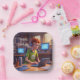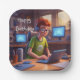 Estas divertidas placas de papel de personalizado de cumpleaños incluyen a un adolescente jugando a videojuegos o simplemente disfrutando del ordenador en general.