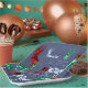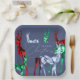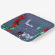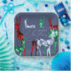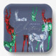 Platos de papel de Navidades de color azul y de diseño único, diseñados con reno de color acuático pintado a mano en tres variedades de piedras preciosas: esmeralda, rubí y topaz azul