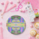 Plato De Papel Geométrica de púrpura azul verde amarillo