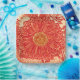 Placa de papel en la huella de una margarita de Gerbera, basada en una fotografía, transformada digitalmente y teñida a mano - naranja de mandarina, melocotón y amarillo dorado