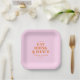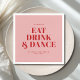 GET READY TO EAT DRINK AND DANCE! Modern pink, orange, bold font, wedding custom paper plates with your names and date.