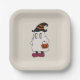 Plato De Papel Ghost holding pumpkin and wearing witch hat