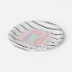 ¡Una fiesta de halloween no tan espeluznante! Pastel rosa Hey Boo Ghost Halloween Cumpleaños Plates con fondo de franja blanca y negra.