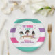 ¡Voltea, tiembla y juega! Platos de fiesta de cumpleaños de gimnasia en rosa, morado y turquesa.