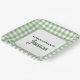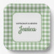 Pretty green gingham plaid gender neutral baby shower paper plates, change the text yourself when you order