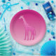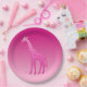 Plato De Papel Girafa geométrica moderna, fucsia y rosa claro