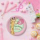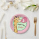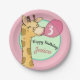 La fantástica jirafa que sopla chicle de arte adorna este plato fiesta. Ideal para cumpleaños, duchas para bebés u otras ideas fiestas relacionadas con la jungla. Sólo cambia el texto del personalizado.