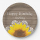 Plato De Papel Girasol, cordón y madera personalizados