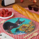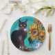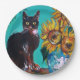PLATO DE PAPEL GIRASOLES CON GATO NEGRO EN TURQUESA AZUL