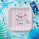 Adorable pastel pink baby shower paper plates, edit the text when ordering.