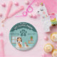 Add a playful touch to your little animal lover’s birthday with these girl veterinarian paper plates designed by Destei. The design features a cartoon girl vet standing behind a gray examination table with a puppy and kitten, set against a teal animal clinic background. A large paw print above the illustration lets you add the child’s age, making each plate fun, personal and perfectly themed. Ideal for kids’ veterinarian-themed birthday parties, these plates bring color, personality and a festive vibe to any celebration.