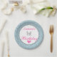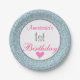 Plato De Papel Girly Glam Purpurina rosa y azul claro primer cump