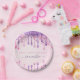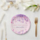 Plato De Papel Girly Glam Purpurina rosado morado goteo 13 cumple
