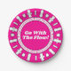 Otro lindo conjunto de placas de papel de personalizable de JessicaAmber - pregunta por las órdenes de los personalizados! Estos platos son perfectos para picar algo en el fiesta de su hijo o adolescente. Cuenta con un adorable borde de productos de menstruación como toallas sanitarias, revestimientos de madera, tazas menstruales y tampones. Dibujado en un estilo personalizado kawaii con rostros pequeños y alegres, en una combinación de colores blanco y rosa cálido. La parte delantera tiene el título 'Ir con el flujo'. y un borde que repetidamente dice 'Gracia del primer periodo feliz', que puede cambiar para agregar el nombre de su hija. 🩸 Para obtener más suministros de fiesta durante el primer periodo, visite mi tienda Zazzle.com/JessicaAmberArtist ⭐ Para pedidos de personalizados, envíame un mensaje a Zazzle