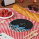 Personalice añadiendo el nombre de su fiesta adolescente chica a estos modernos platos de papel de impresión de leopardo blanco y negro con un elegante listón azul cobalto clásico atado en una bonita proa de cejas. Imagen plana impresa, no cinta real.
