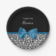 Plato De Papel Girly Name Leopard Print Bonito Blue Ribbon Bow